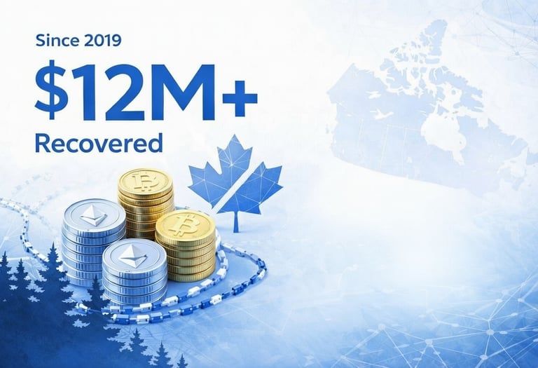 Since 2019, our dedicated Canadian team has helped recover over $12 million in lost cryptocurrency, serving every province and territory with care and confidentiality.